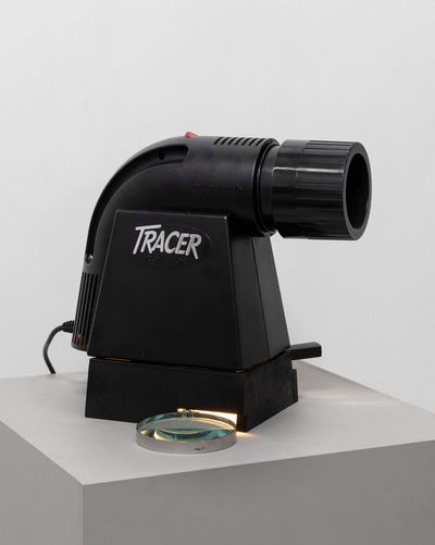 (Detail) Doris Guo, angst, 2023, wood, hardware, plastic, opaque projector, dimensions variable