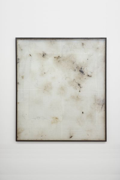Paraffin, Bindfaden, Papier, Kopien, Dreck, Lack, Silikon, Tackernadeln auf Glas Wax, yarn, paper, copies, dirt, varnish, silicone, staples on glass