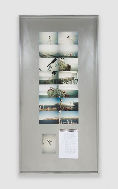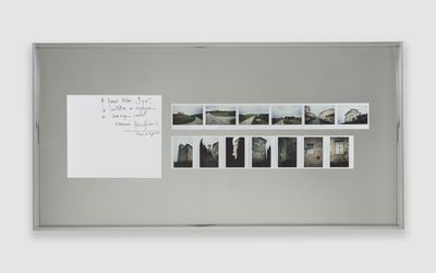 Polaroid prints, signed page from Renaud Camus's Châteaux monograph, mirror polished aluminium