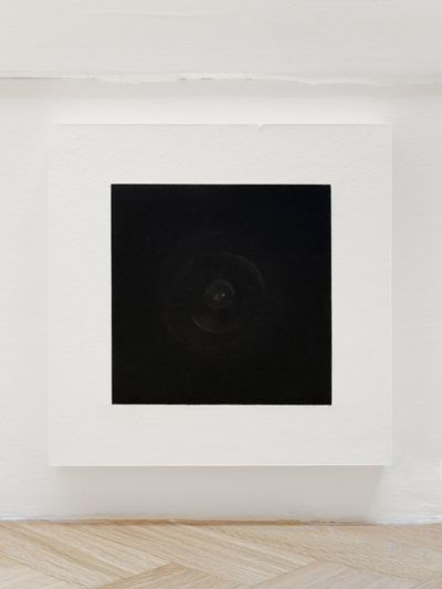 While rocking the working perceptibility of ink tone and depth on the paper surface grows into a singular form. Throughout this process, the artist searches for something recognizable, for context, also aspiring for more darkness. It is difficult to achieve a light value after all the cuts layered and working together have been made. The darker the surface, the easier it is to see the ambient dust which floats around, accumulating.