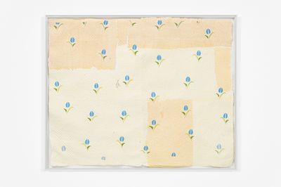 Collage of vintage paper party napkin on handmade paper, artist frame
