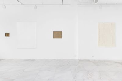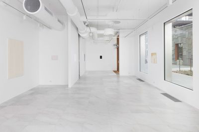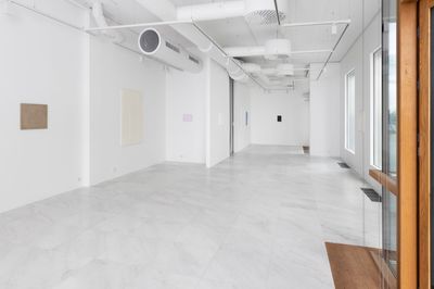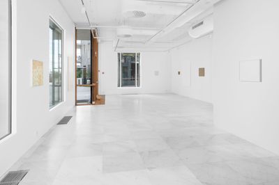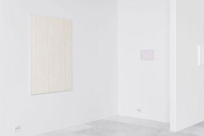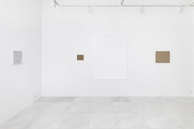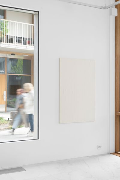 Building on previous exhibitions, Sæther’s exhibition at VI, VII groups several kinds of works together, including 4 paintings cast in paper pulp that resemble “strietapet,” a wallpaper first introduced to Norway in the 1950s, and which came to fill almost every home over the next two decades. A plaster cast is also included of an imagined fixture (Untitled, 2022) as well as several works on paper constructed from vintage paper napkins so popular that enthusiasts have built entire collections around them.